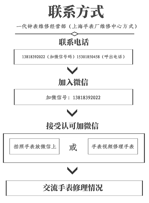 上海一代钟表维修经营部 全国网络订购上海牌手表 13818392022(可加微信) 全国网络修理上海牌手表:上海市宝山区逸仙路1588弄口 门市部:3号线至殷高西路地铁站2号出口往北走